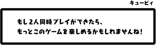 キュービィ:もし2人同時プレイができたら、もっとこのゲームを楽しめるかもしれませんね!